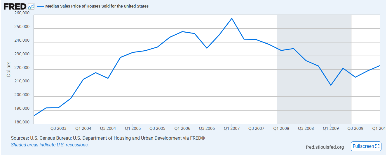 Graph depicting the bubble period and crash of the Housing Bubble of 2008.