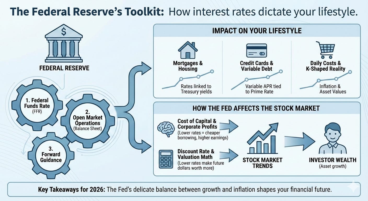 Discover how the Federal Reserve's toolkit shapes your daily life. Learn how the Fed affects the stock market and what 2026 interest rate trends mean for your wallet.